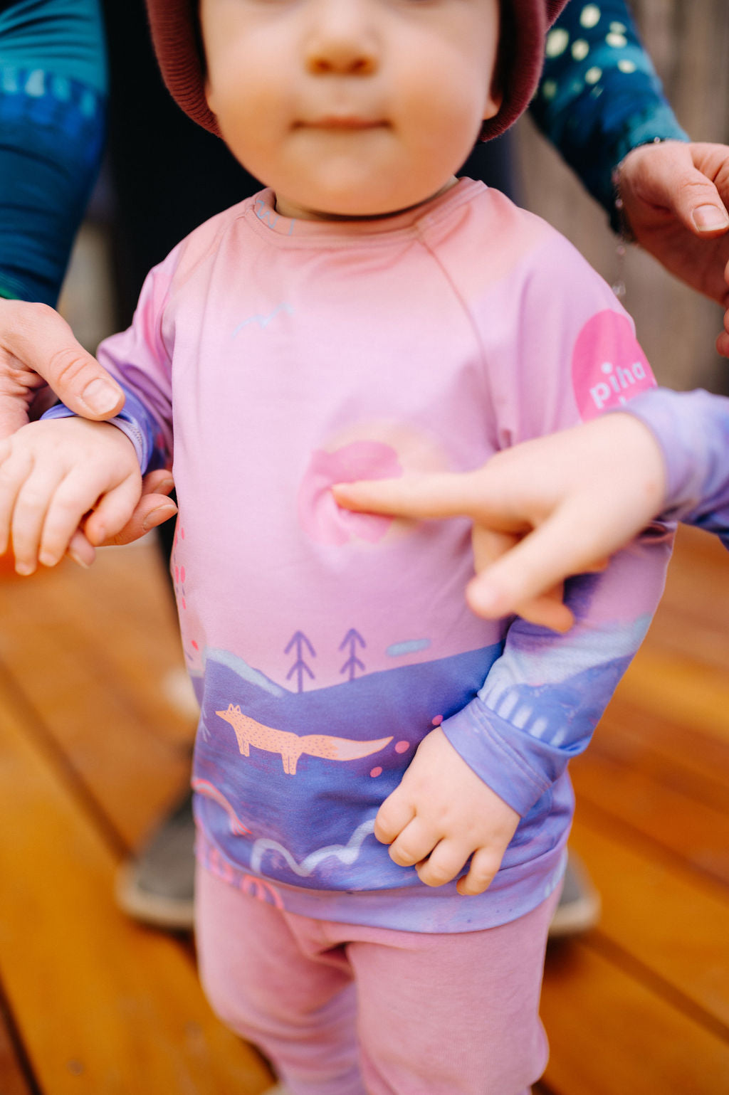Pro novou kolekci Pihacheck jsem vytvořila pro mě charakteristickou abstraktní krajinu, které vznikaly nejdříve spontánně na papíře. Trika jsem tvořila pro aktivní rodiny, které mají radost z pohybu. Slovo, které se mnou nejvíce rezonuje, je proudění - vítr ve vlasech, divokost a hravost.