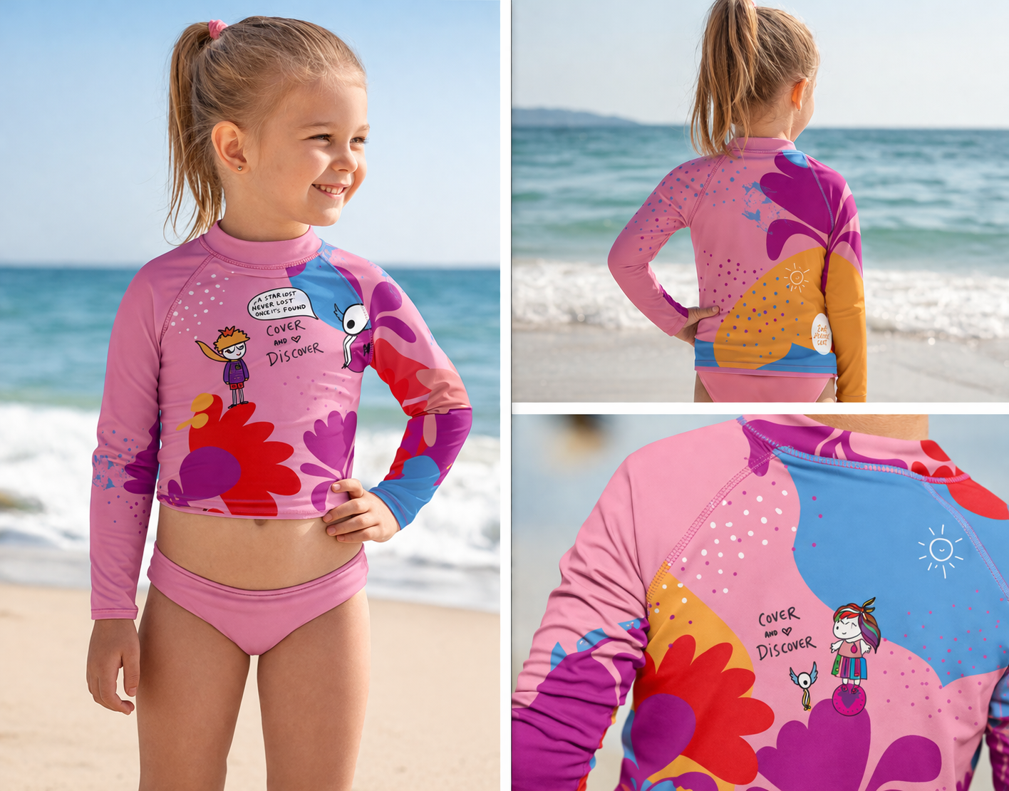 Letní trika s hlavním claimem COVER & DISCOVER přináší klid do situací, které bývají plné obav - jako jsou třeba aktivity s celodenním pobytem venku nebo na slunci a nutnost neustále reaplikace SPF přípravků při jejich smývání vodou či potem, pokud chceme sebe či své děti dobře chránit.