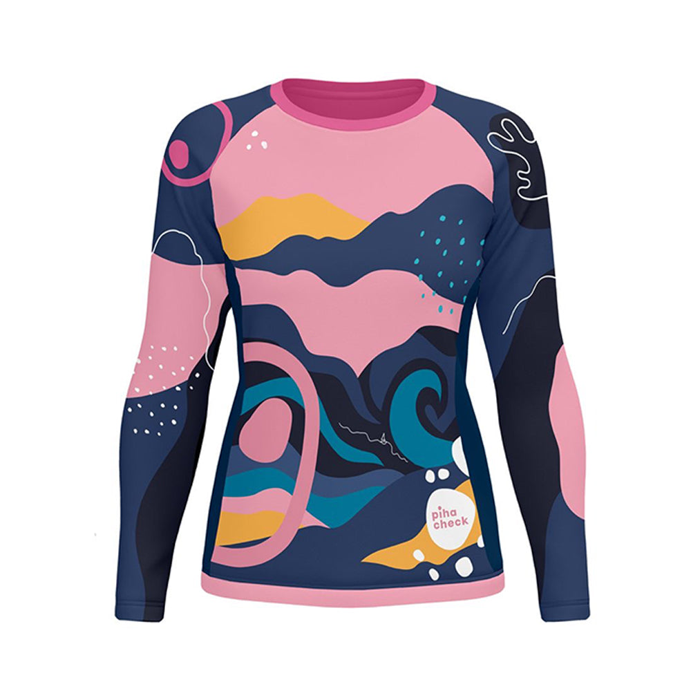 Růžové ochranné triko s UPF 50+ je součástí první autorské rodinné kolekce Piháčka. Klade důraz hlavně a převážně na pocity ženy v příléhavém topu a snaží se uspořádáním svých barev, tvarů a směrů opticky zeštíhlit siluetu a lichotit postavě.