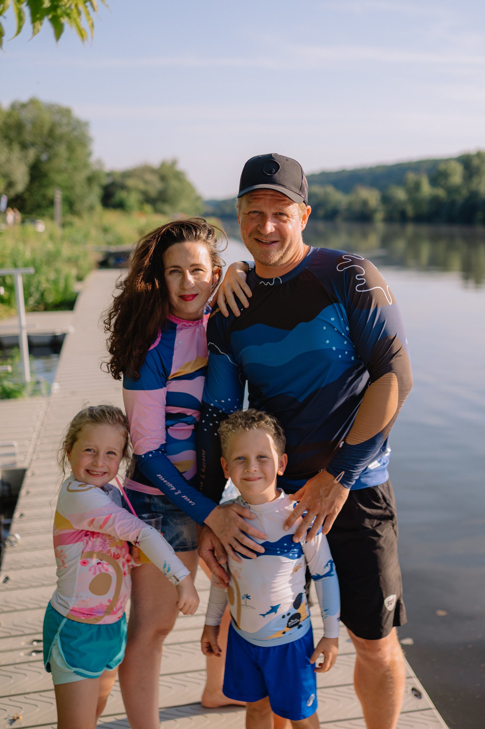 Dětské chranné UPF 50+ triko je součástí první autorské rodinné kolekce Piháčka. Přichází v tónech hravě modré spolu s několika podmořskými kamarády včetně žraloka, chobotnice, velryby nebo rejnoka.